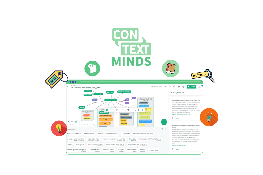 ContextMinds helps you visually organize your content ideas and AI-generated keyword suggestions.
